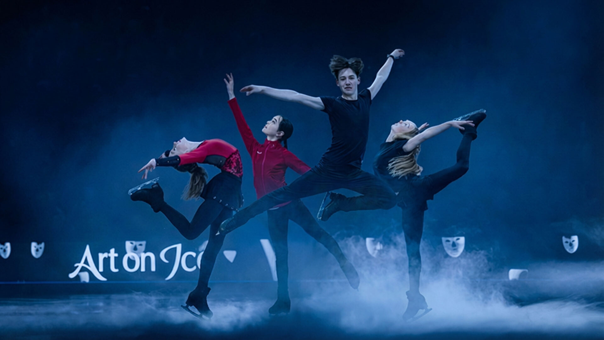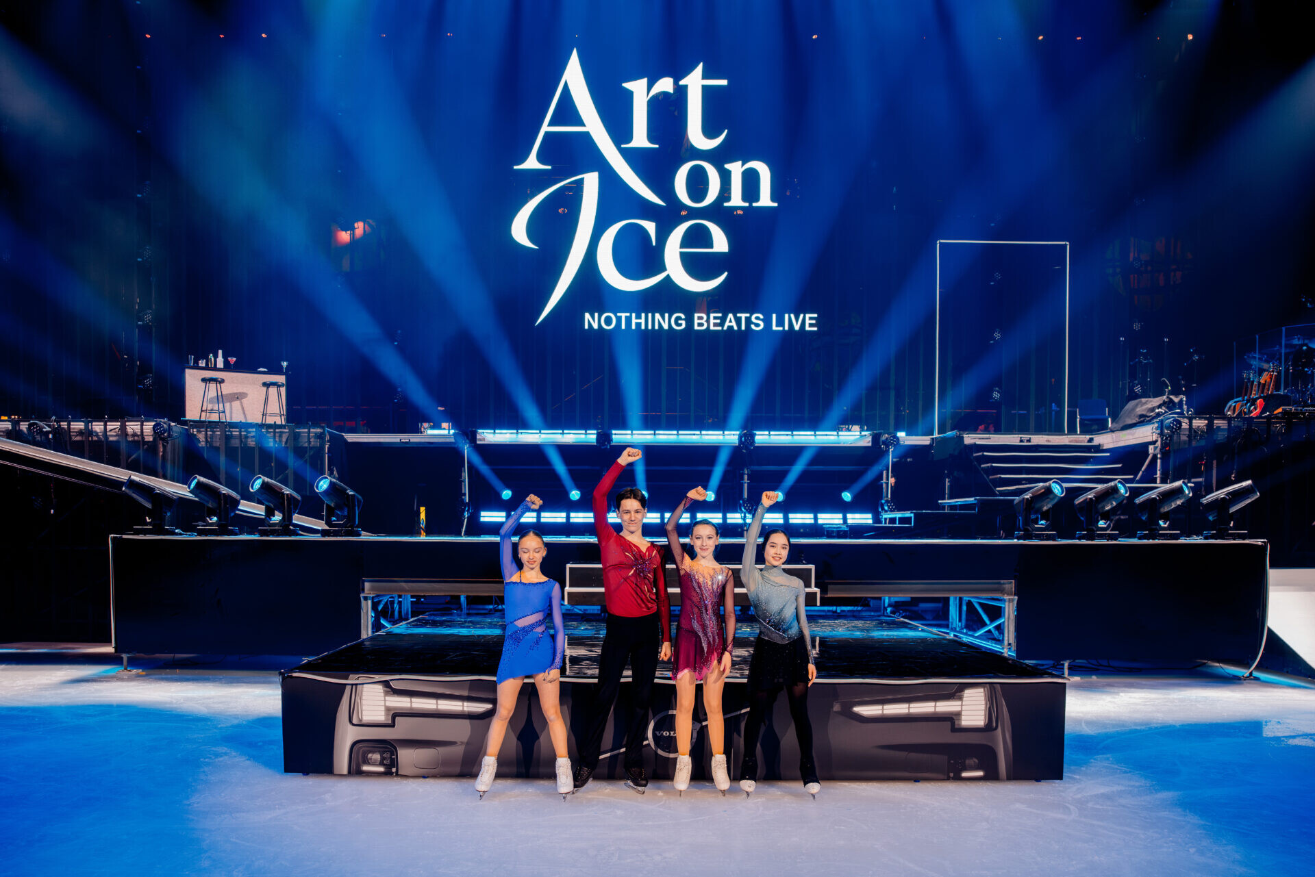 Die Talente Noélie Haymoz, Gion Schmid, Elisabeth Dibbern und Mayuka Süess (v.l.) traten bei Art on Ice 2026 auf und begeisterten zum Song «Power» von Stefanie Heinzmann und Stress.